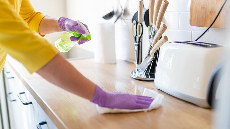 Por ser o lugar onde fica guardado os alimentos industrializados e os naturais, como frutas, verduras e legumes, é importante redobrar a limpeza na superfície de onde esses alimentos estão guardados.